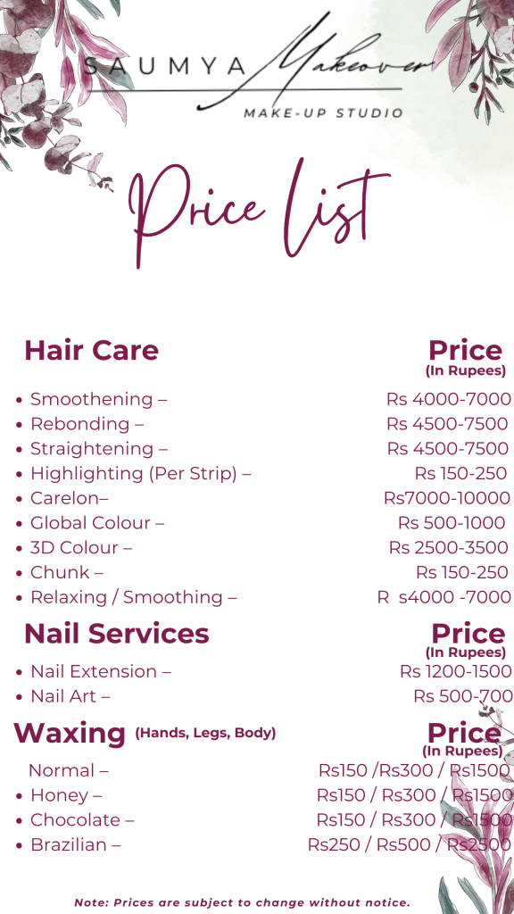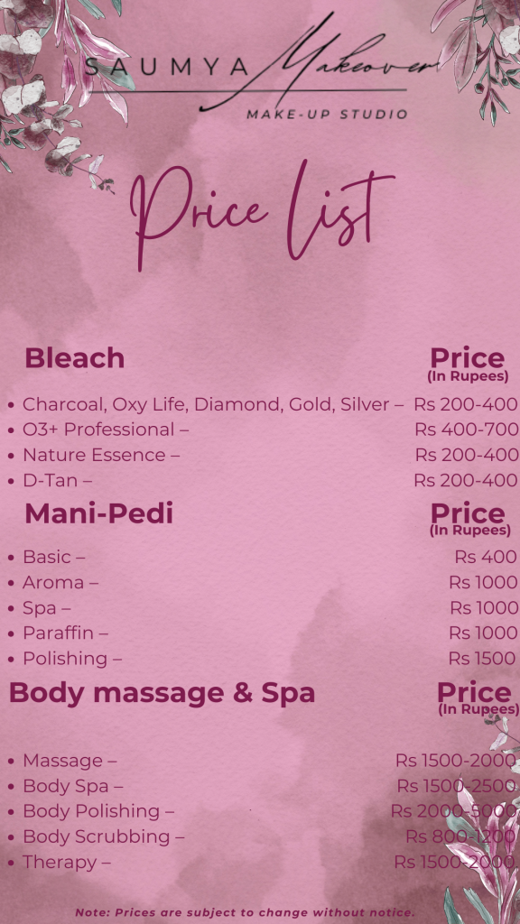 With over 22 years of expertise, SAUMYA MAKEOVER is your one-stop destination for complete beauty and wellness. From precision haircuts, trending hairstyles, vibrant hair colours, and nourishing hair spas to specialized facials ranging from affordable glow treatments to premium luxury therapies, we ensure every service is tailored to perfection. Our mastery in makeup artistry—whether it’s bridal makeup, side makeup, party looks, or advanced airbrush makeup—guarantees a flawless transformation for every occasion. We also provide full-body waxing, expert manicures and pedicures, threading, and all essential salon services with the highest level of care and professionalism. At SAUMYA MAKEOVER, we don’t just deliver beauty services—we create experiences that make you feel confident, radiant, and truly unforgettable.